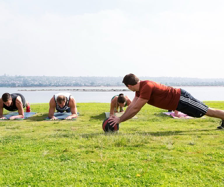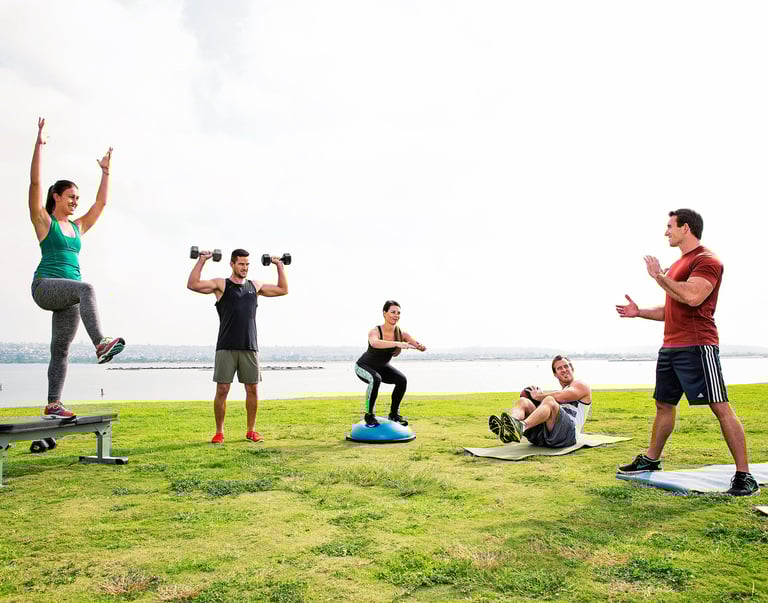I offer 1 on 1, and group sessions. I also offer the ability to come to my personal studio located in the Claremont area of San Diego, or, I am happy to come to you. My training sessions consist of variable resistance weight training, balance work, cardiovascular sports performance and agility.